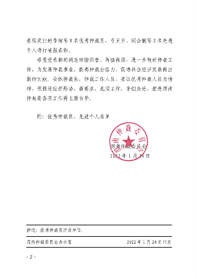 渭南仲裁委員會(huì) 關(guān)于表彰優(yōu)秀仲裁員、先進(jìn)個(gè)人的決定