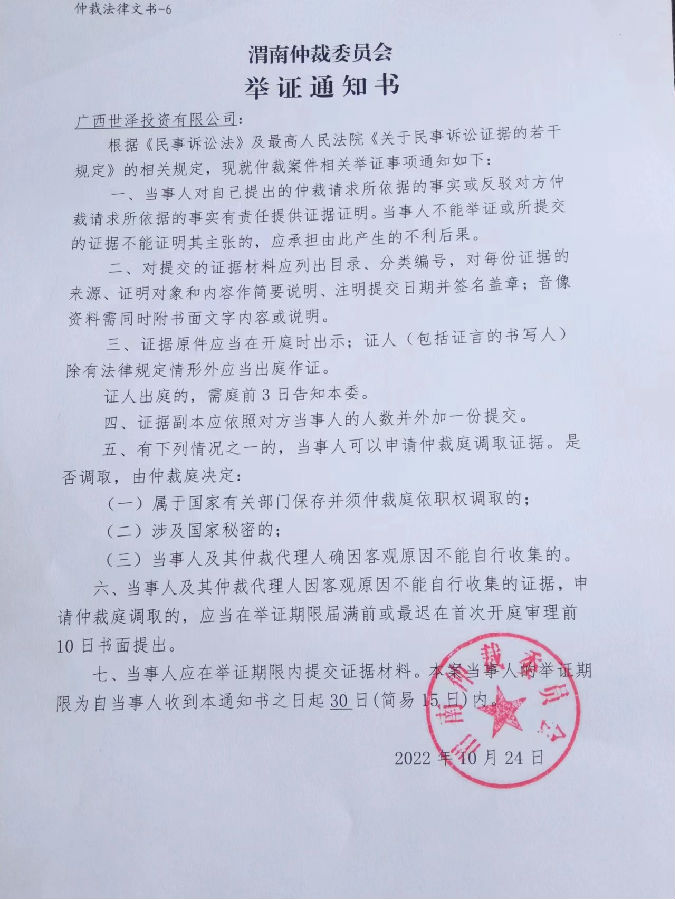 中鐵二十局集團第一工程有限公司與廣西世澤投資有限公司一案公告