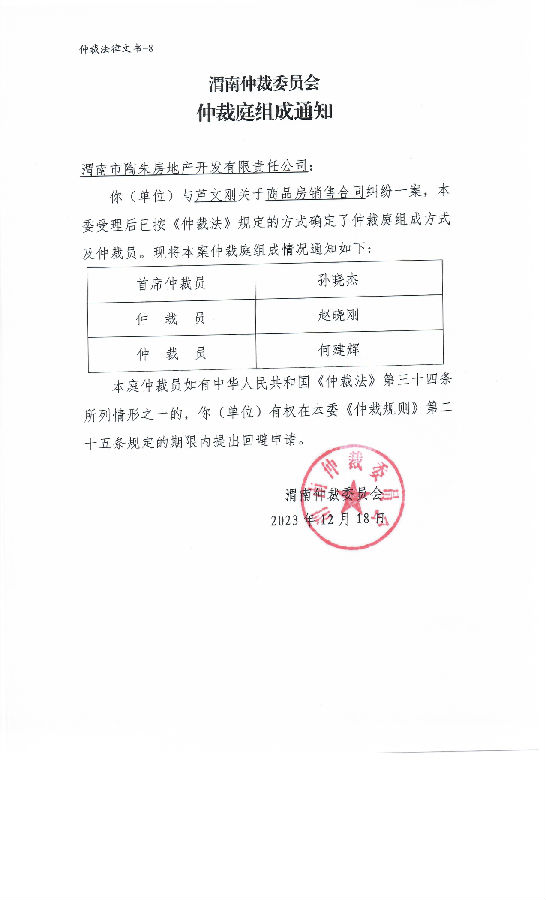 蘆文剛與渭南市陶朱房地產(chǎn)開發(fā)有限責任公司一案公告